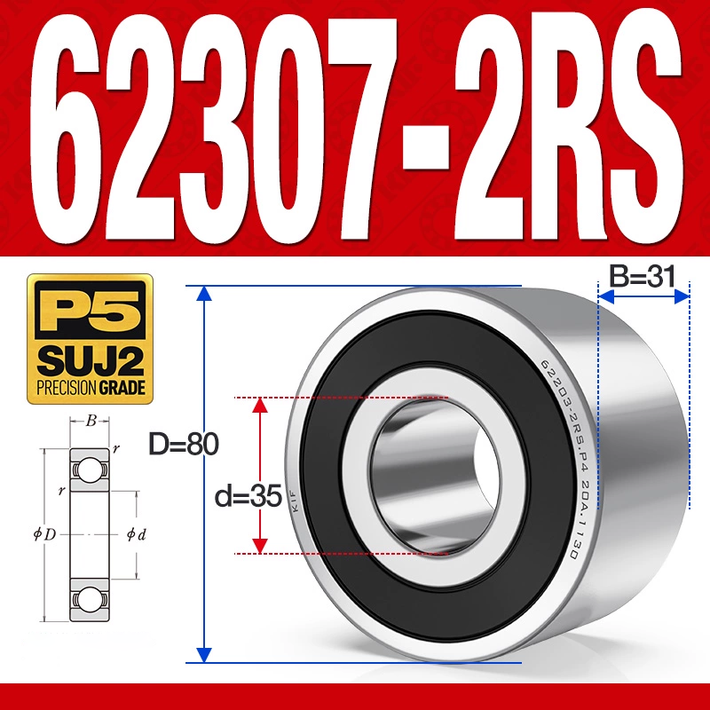Vòng bi – bạc đạn 62307-2RS (Bi cầu 2 dãy – Phớt cao su – 35*80*31 mm)