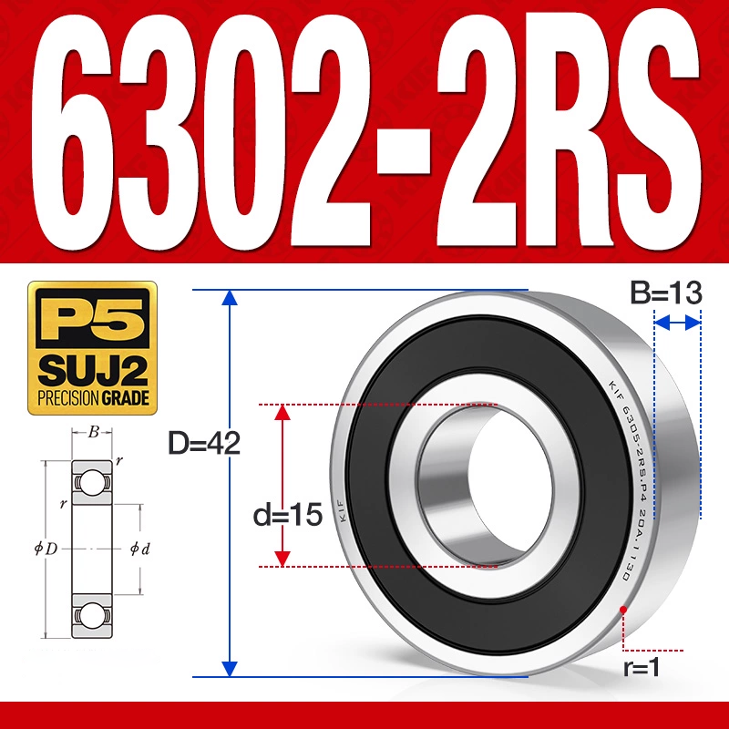 Vòng bi – bạc đạn 6302-2RS (Phớt cao su – 15*42*13 mm)