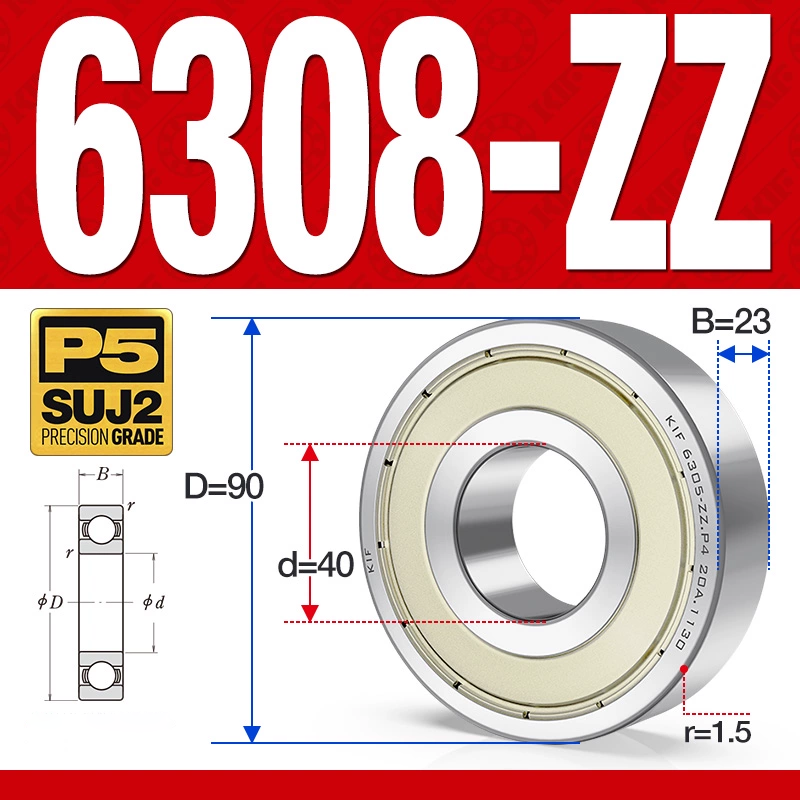 Vòng bi – bạc đạn 6308-ZZ [ (Phớt cao su – 40*90*23 mm)
