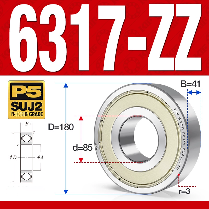 Vòng bi – bạc đạn 6317-ZZ (Phớt kim loại – 85*180*41 mm)