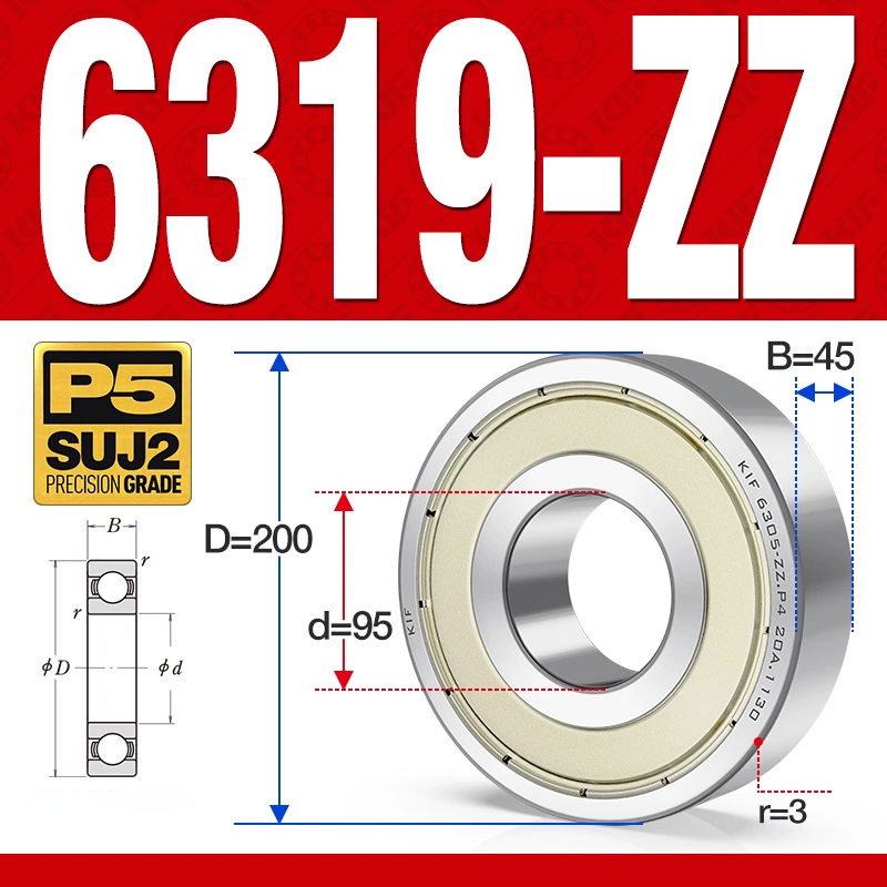 Vòng bi – bạc đạn 6319-ZZ (Phớt kim loại – 95*200*45 mm)