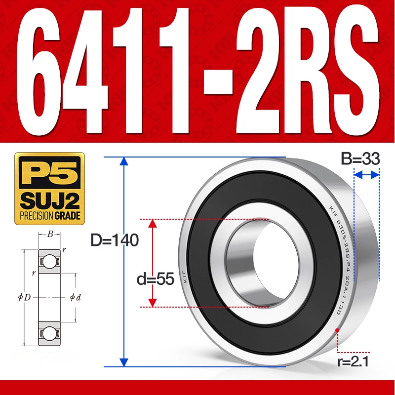 Vòng bi – bạc đạn 6411-2RS (Phớt cao su – 55*140*33 mm)