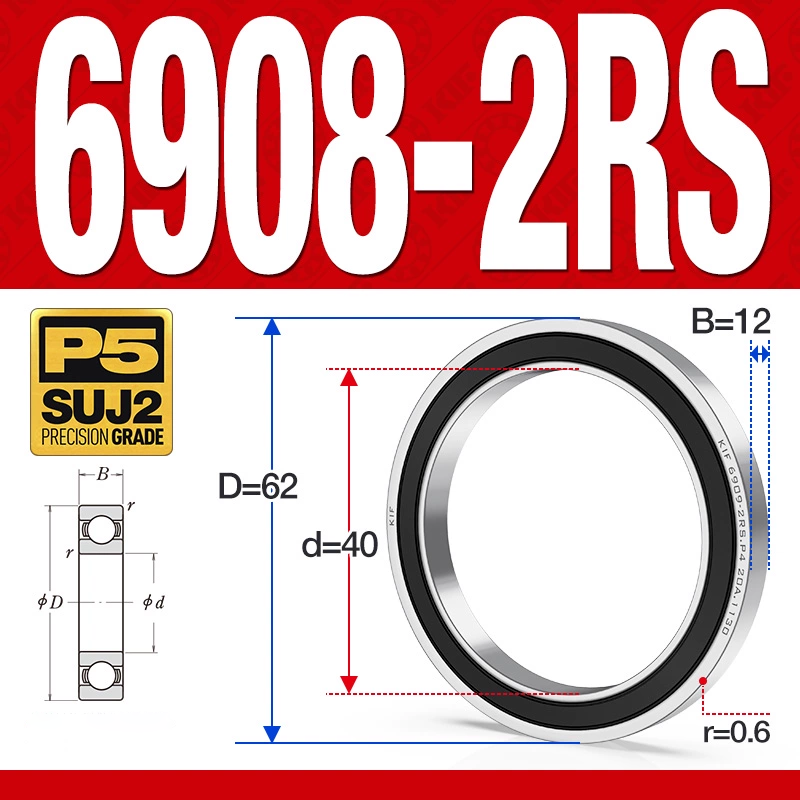 Vòng bi – bạc đạn 6908-2RS (Phớt cao su – 40*62*12 mm)