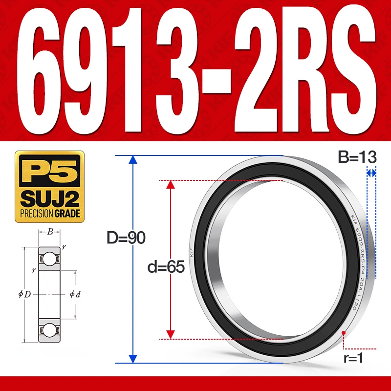 Vòng bi – bạc đạn 6913-2RS (Phớt cao su – 65*90*13 mm)