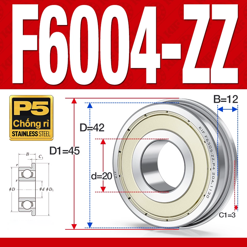 Vòng bi – bạc đạn F6004-ZZ (Mặt bích – phớt kim loại – 20*42*12 mm)