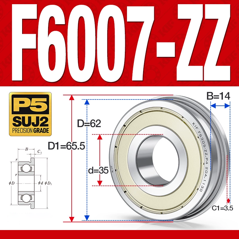 Vòng bi – bạc đạn F6007-ZZ (Mặt bích – phớt kim loại – 35*62*14 mm)