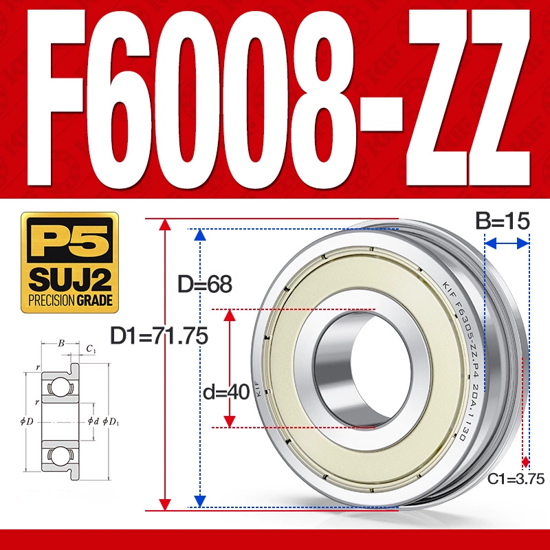 Vòng bi – bạc đạn F6008-ZZ (Mặt bích – phớt kim loại – 40*68*15 mm)