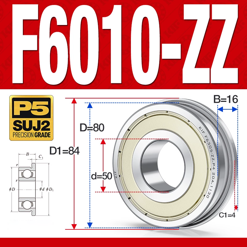 Vòng bi – bạc đạn F6010-ZZ (Mặt bích – phớt kim loại – 50*80*16 mm)
