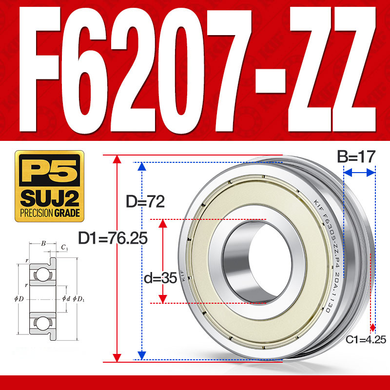 Vòng bi – bạc đạn F6207-ZZ (Mặt bích – phớt kim loại – 35*72*17 mm)