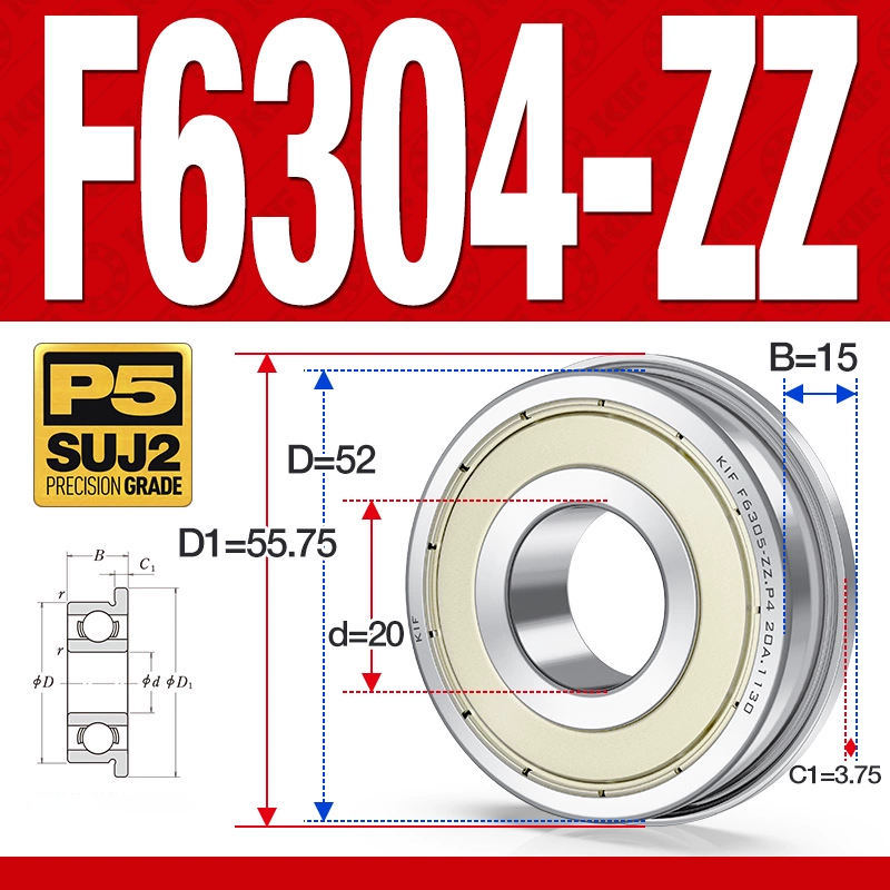 Vòng bi – bạc đạn F6304-ZZ (Mặt bích – phớt kim loại – 20*52*15 mm)