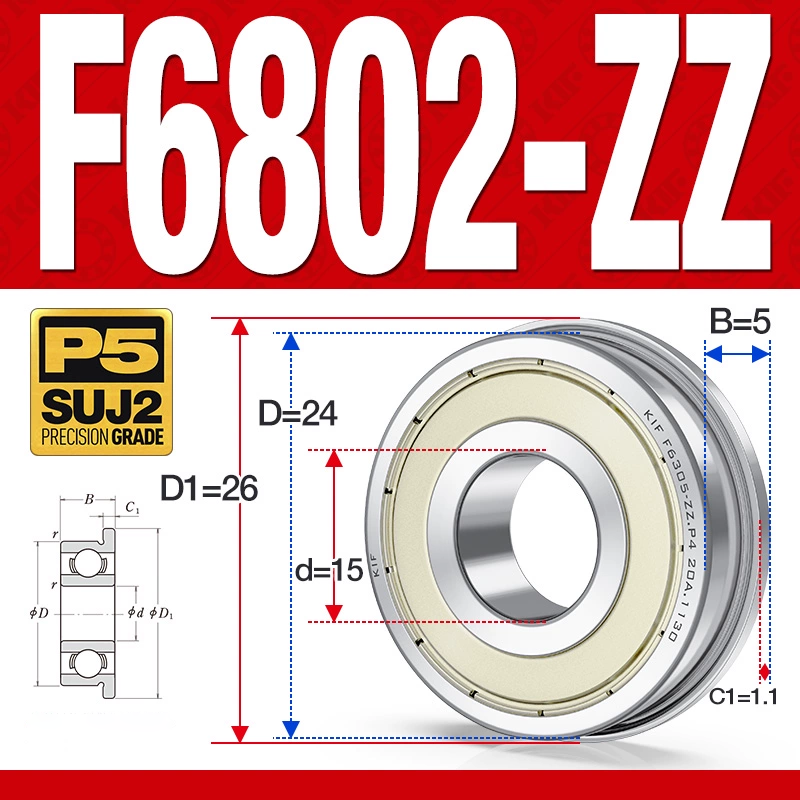 Vòng bi – bạc đạn F6802-ZZ (Mặt bích – phớt kim loại – 15*24*5 mm)