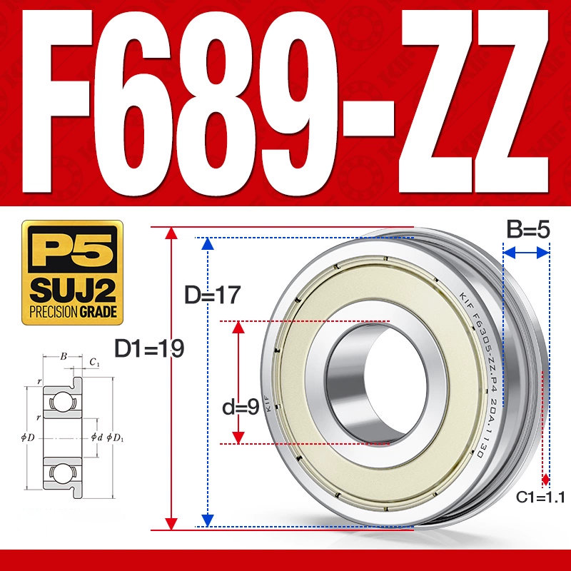 Vòng bi – bạc đạn F689-ZZ (Mặt bích – 9*17*5 mm)