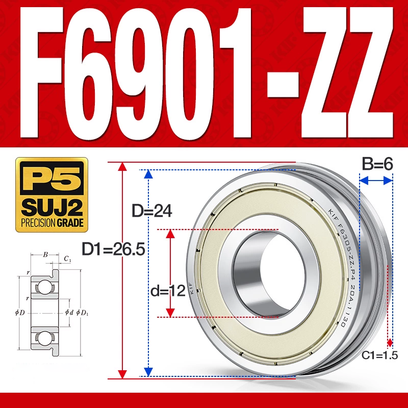 Vòng bi – bạc đạn F6901-ZZ (Mặt bích – phớt kim loại – 12*24*6 mm)