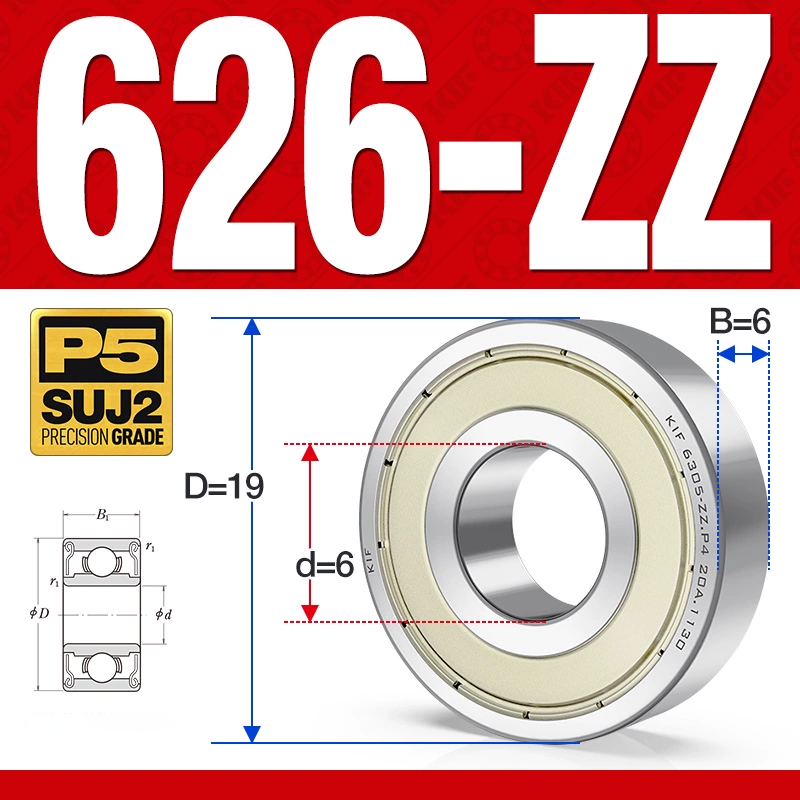 Vòng bi – bạc đạn mini 626-ZZ (Phớt kim loại – 6*19*6 mm)