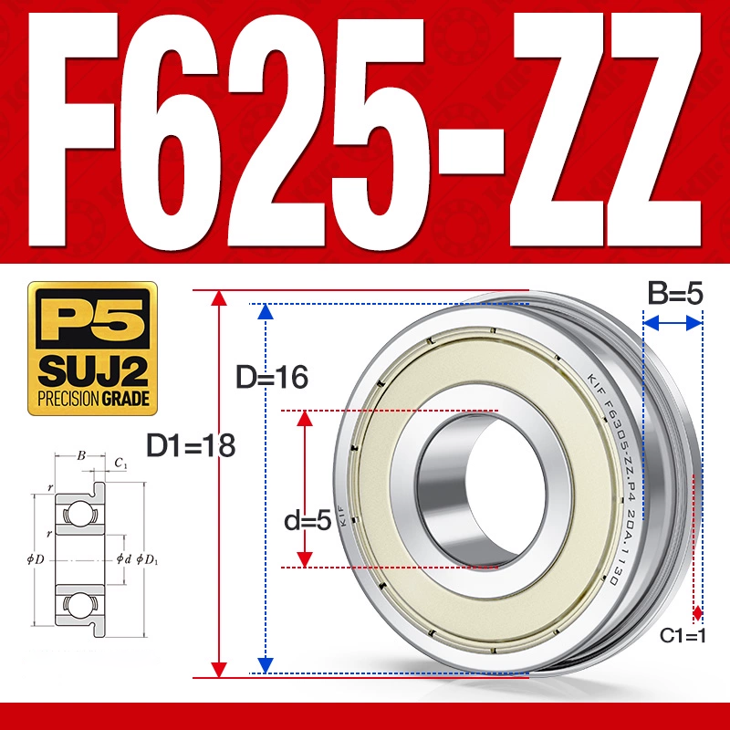 Vòng bi – bạc đạn mini F625-ZZ (Mặt bích – 5*16*5 mm)