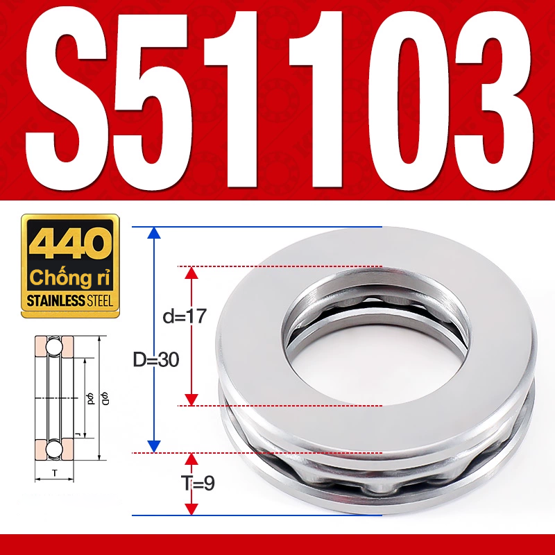 Vòng bi – bạc đạn S51103 (Chặn trục – Inox440C – 17*30*9 mm)