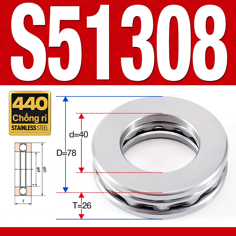 Vòng bi – bạc đạn S51308 (Chặn trục – Inox440C – 40*78*26 mm)