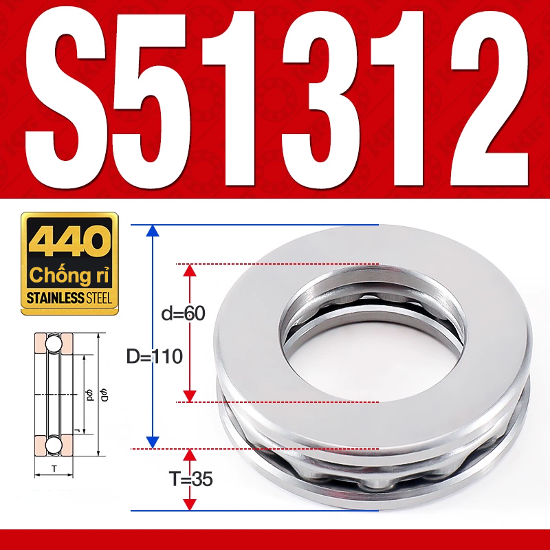 Vòng bi – bạc đạn S51312 (Chặn trục – Inox440C – 60*110*35 mm)