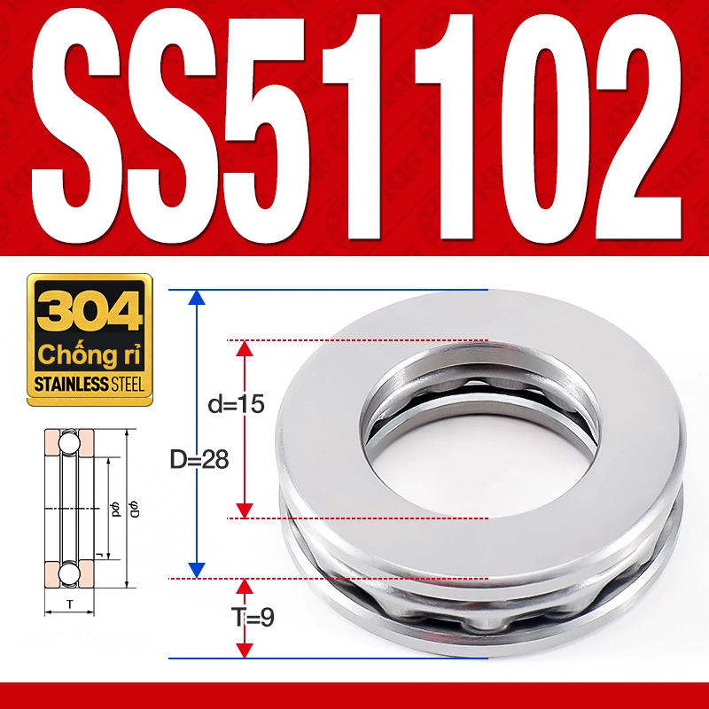 Vòng bi – bạc đạn SS51102 (Chặn trục – Inox 304 – 15*28*9 mm)
