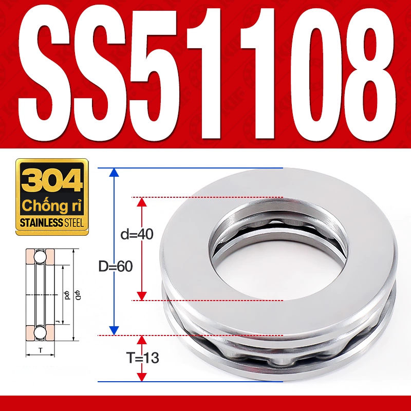 Vòng bi – bạc đạn SS51108 (Chặn trục – Inox 304 – 40*60*13 mm)