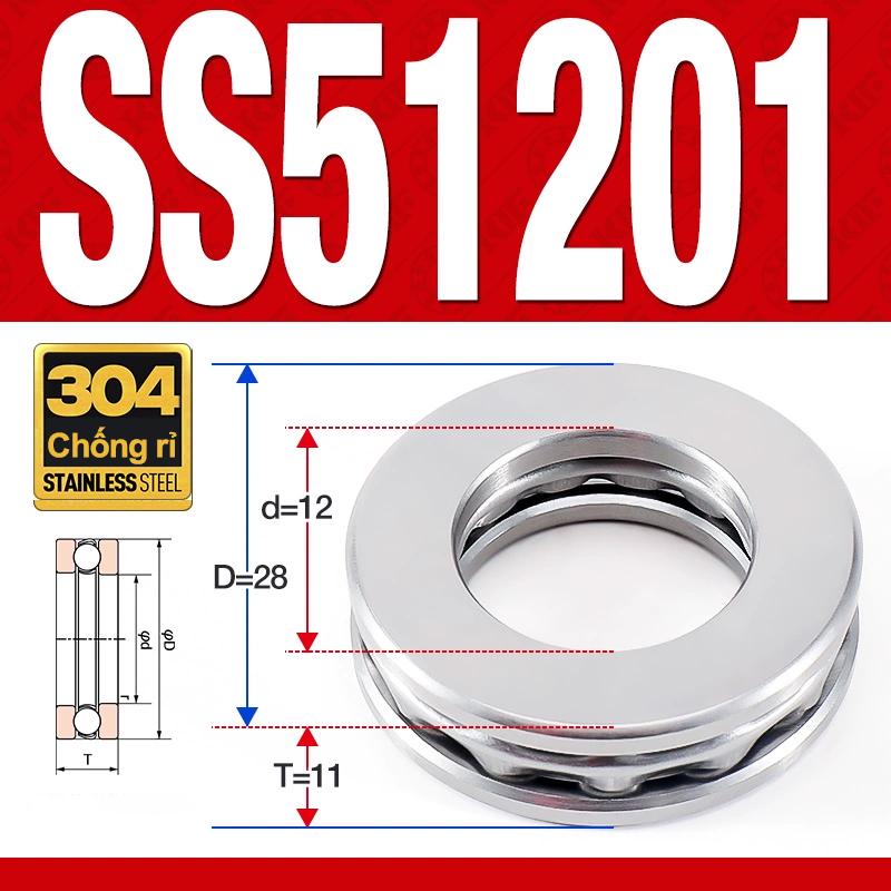 Vòng bi – bạc đạn SS51201 (Chặn trục – Inox 304 – 12*28*11 mm)