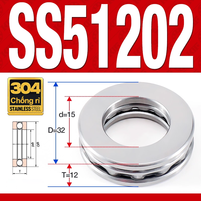 Vòng bi – bạc đạn SS51202 (Chặn trục – Inox 304 – 15*32*12 mm)