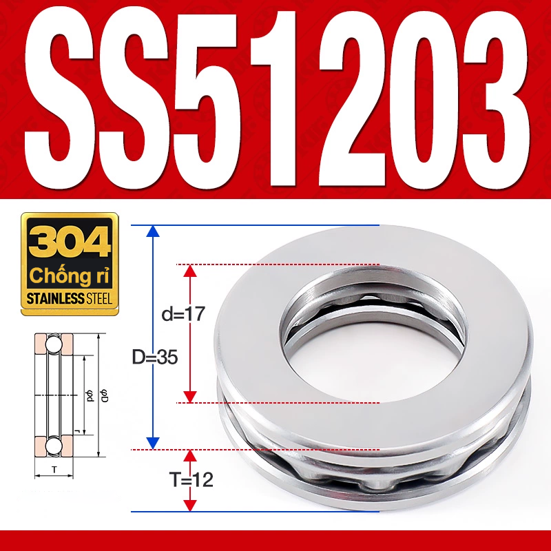 Vòng bi – bạc đạn SS51203 (Chặn trục – Inox 304 – 17*35*12 mm)