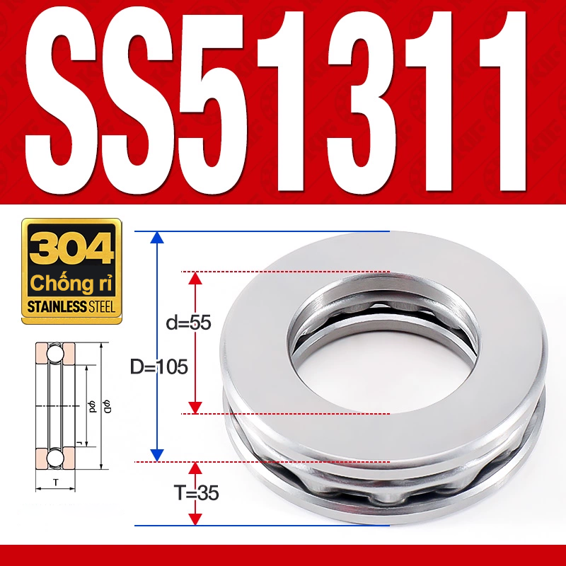 Vòng bi – bạc đạn SS51311 (Chặn trục – Inox 304 – 55*105*35 mm)