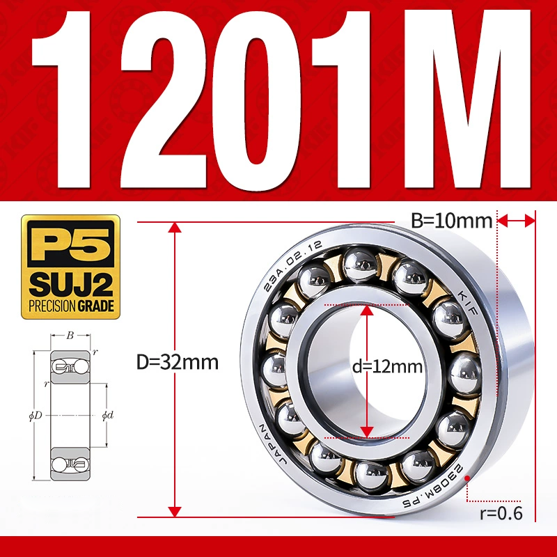 Vòng bi - bạc đạn tự lựa 1201M (Chịu nhiệt - vòng cách bi Đồng - 12*32*10 mm)