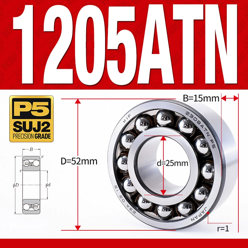 Vòng bi - bạc đạn tự lựa 1205ATN (Chịu nhiệt - vòng cách bi Nylon - 25*52*15 mm)