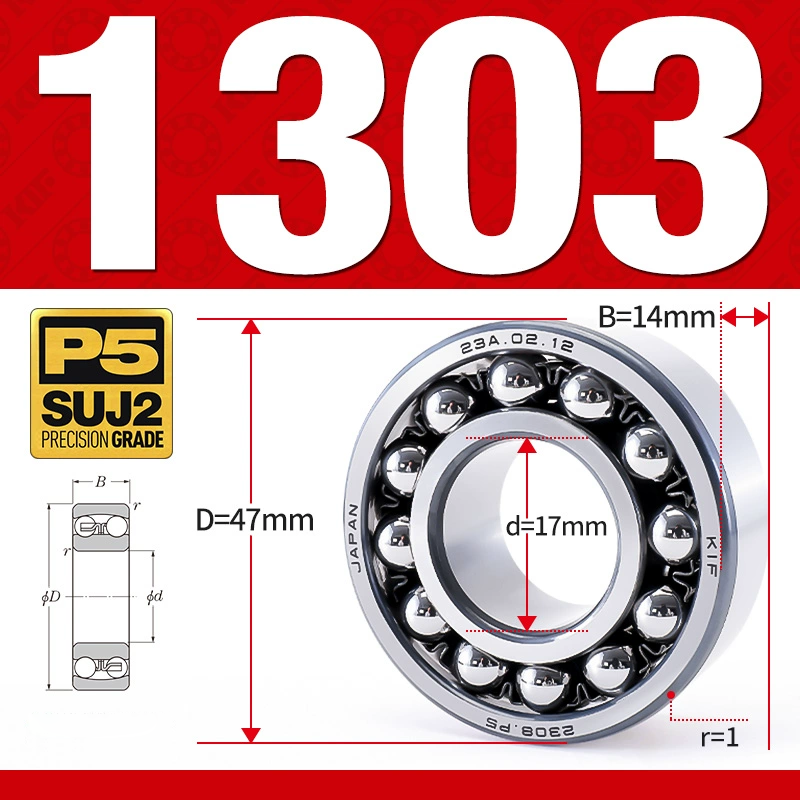 Vòng bi – bạc đạn tự lựa 1303 (Bi cầu – 2 dãy – 17*47*14 mm)