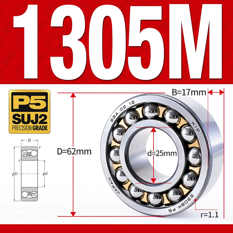 Vòng bi - bạc đạn tự lựa 1305M (Chịu nhiệt - vòng cách bi Đồng - 25*62*17 mm)