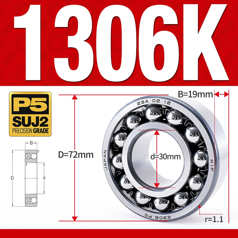 Vòng bi – bạc đạn tự lựa 1306K (Lỗ côn – 30*72*19 mm)