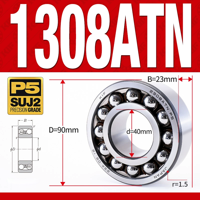 Vòng bi – bạc đạn tự lựa 1308ATN (Chịu nhiệt – vòng cách bi Nylon – 40*90*23 mm)
