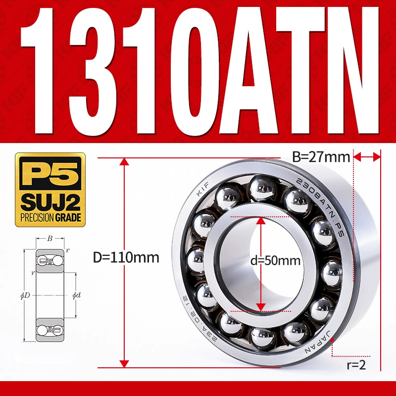 Vòng bi – bạc đạn tự lựa 1310ATN (Chịu nhiệt – vòng cách bi Nylon – 50*110*27 mm)