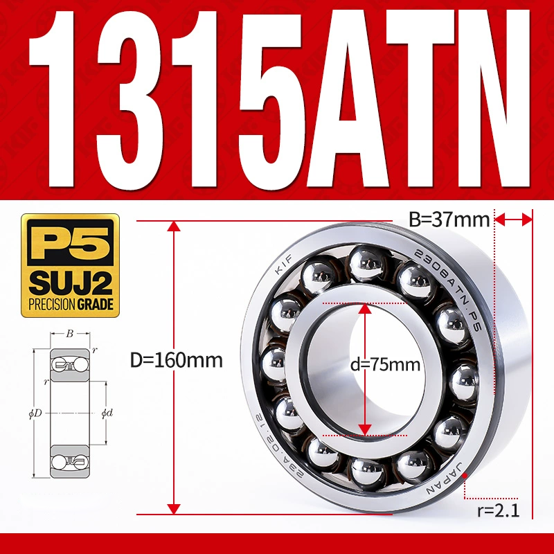 Vòng bi – bạc đạn tự lựa 1315ATN (Chịu nhiệt – vòng cách bi Nylon – 75*160*37 mm)