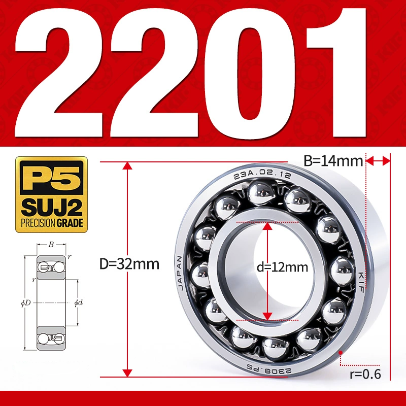 Vòng bi - bạc đạn tự lựa 2201 (Bi cầu - 2 dãy - 12*32*14 mm)