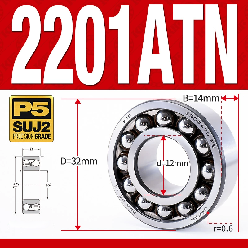 Vòng bi – bạc đạn tự lựa 2201ATN (Chịu nhiệt – vòng cách bi Nylon – 12*32*14 mm)