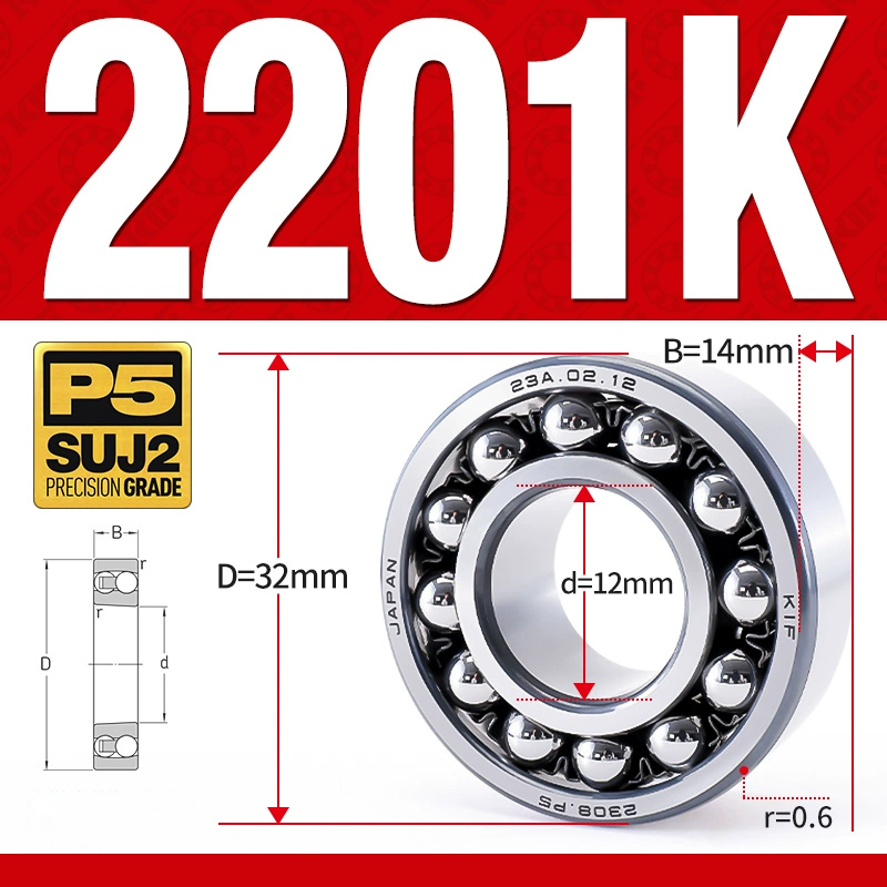 Vòng bi – bạc đạn tự lựa 2201K (Lỗ côn – 12*32*14 mm)