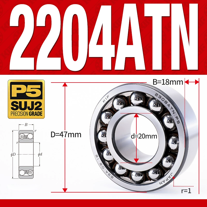 Vòng bi - bạc đạn tự lựa 2204ATN (Chịu nhiệt - vòng cách bi Nylon - 20*47*18 mm)