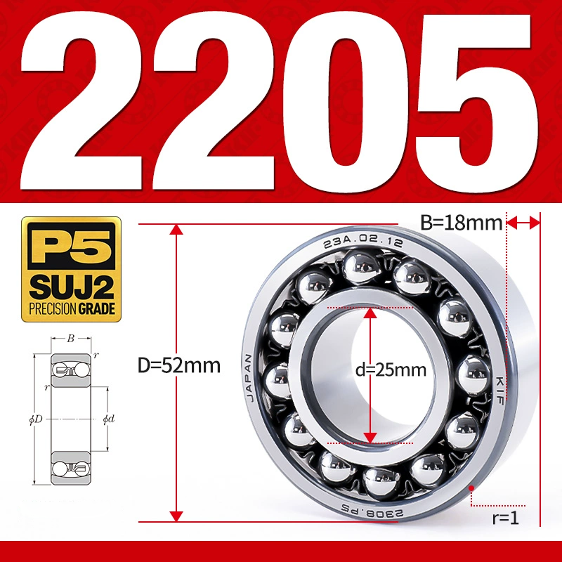 Vòng bi – bạc đạn tự lựa 2205 (Bi cầu – 2 dãy – 25*52*18 mm)