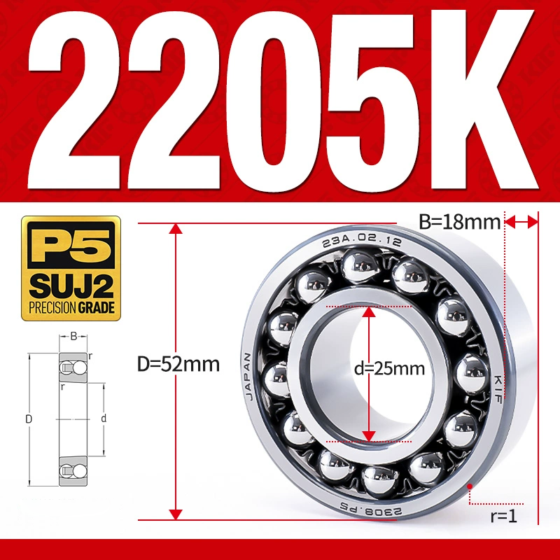 Vòng bi – bạc đạn tự lựa 2205K (Lỗ côn – 25*52*18 mm)