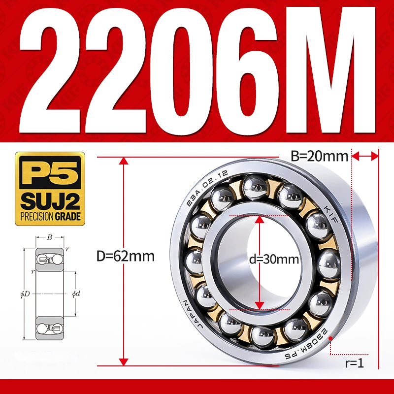 Vòng bi - bạc đạn tự lựa 2206M (Chịu nhiệt - vòng cách bi Đồng - 30*62*20 mm)