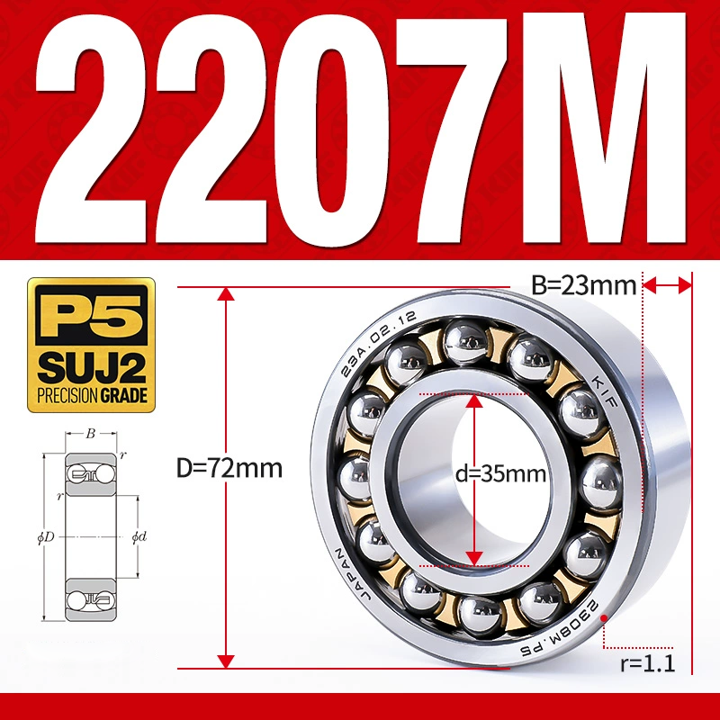 Vòng bi - bạc đạn tự lựa 2207M (Chịu nhiệt - vòng cách bi Đồng - 35*72*23 mm)
