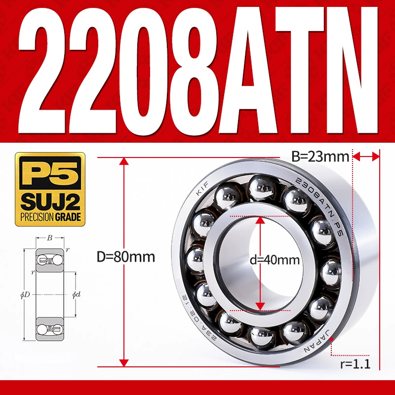 Vòng bi - bạc đạn tự lựa 2208ATN (Chịu nhiệt - vòng cách bi Nylon - 40*80*23 mm)