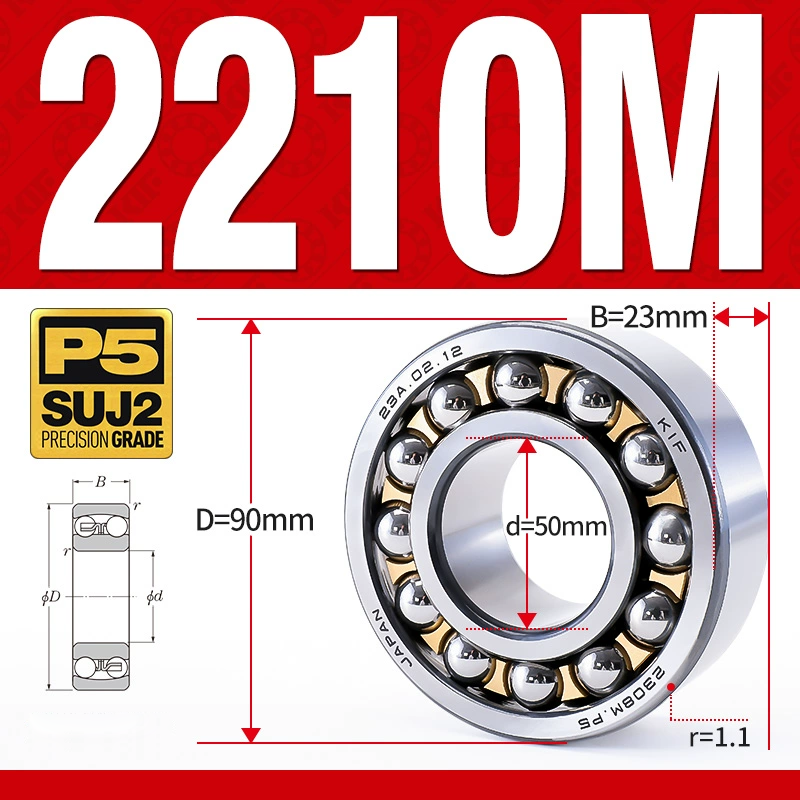 Vòng bi – bạc đạn tự lựa 2210M (Chịu nhiệt – vòng cách bi Đồng – 50*90*23 mm)