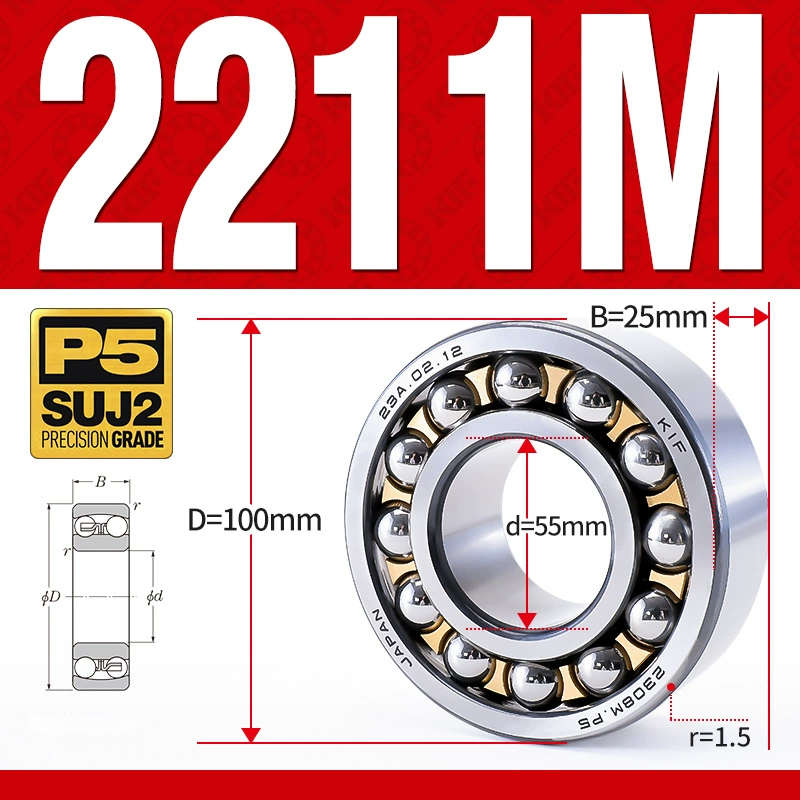 Vòng bi – bạc đạn tự lựa 2211M (Chịu nhiệt – vòng cách bi Đồng – 55*100*25 mm)