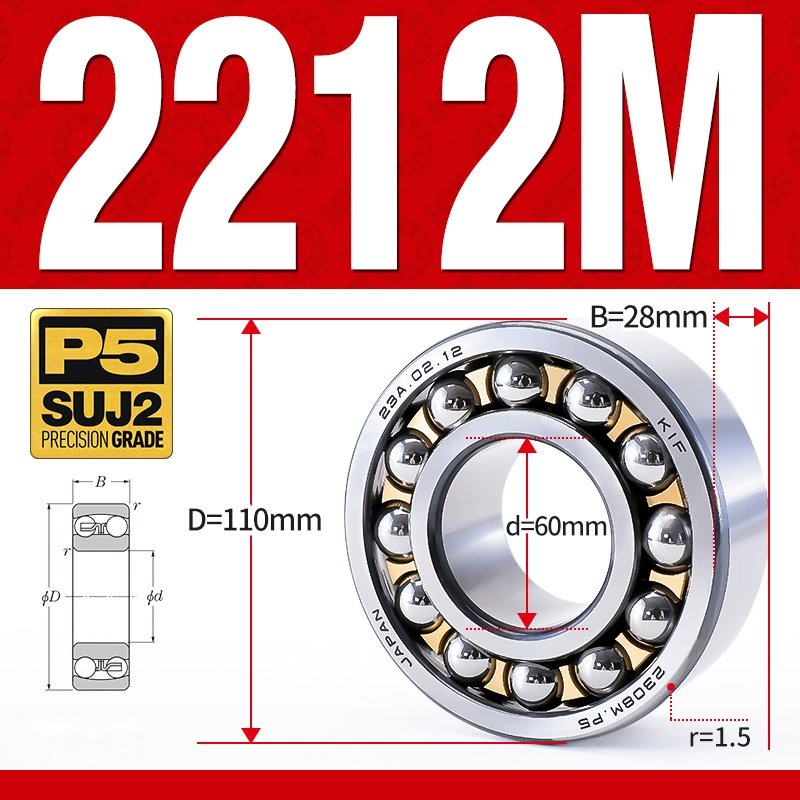 Vòng bi – bạc đạn tự lựa 2212M (Chịu nhiệt – vòng cách bi Đồng – 60*110*28 mm)