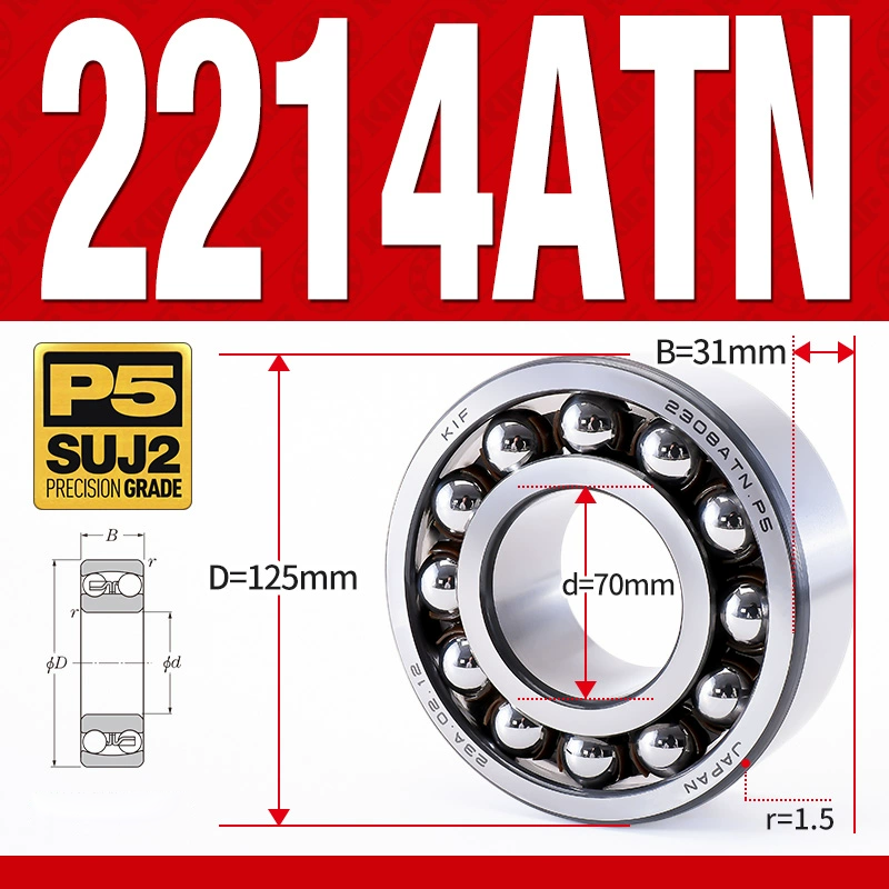 Vòng bi - bạc đạn tự lựa 2214ATN (Chịu nhiệt - vòng cách bi Nylon - 70*125*31 mm)