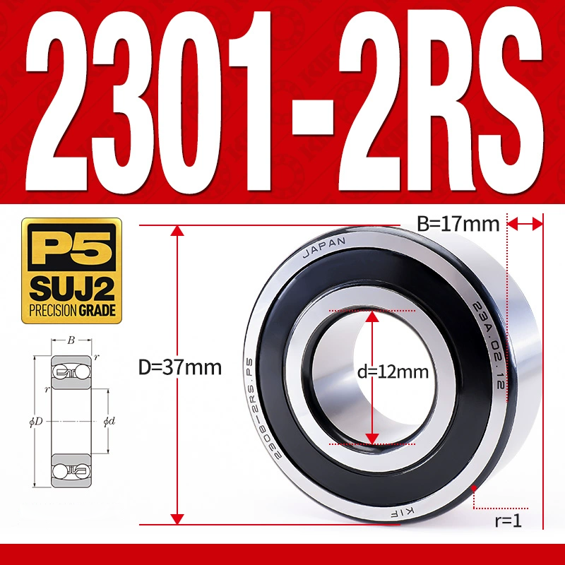 Vòng bi – bạc đạn tự lựa 2301-2RS (Phớt cao su – 12*37*17 mm)